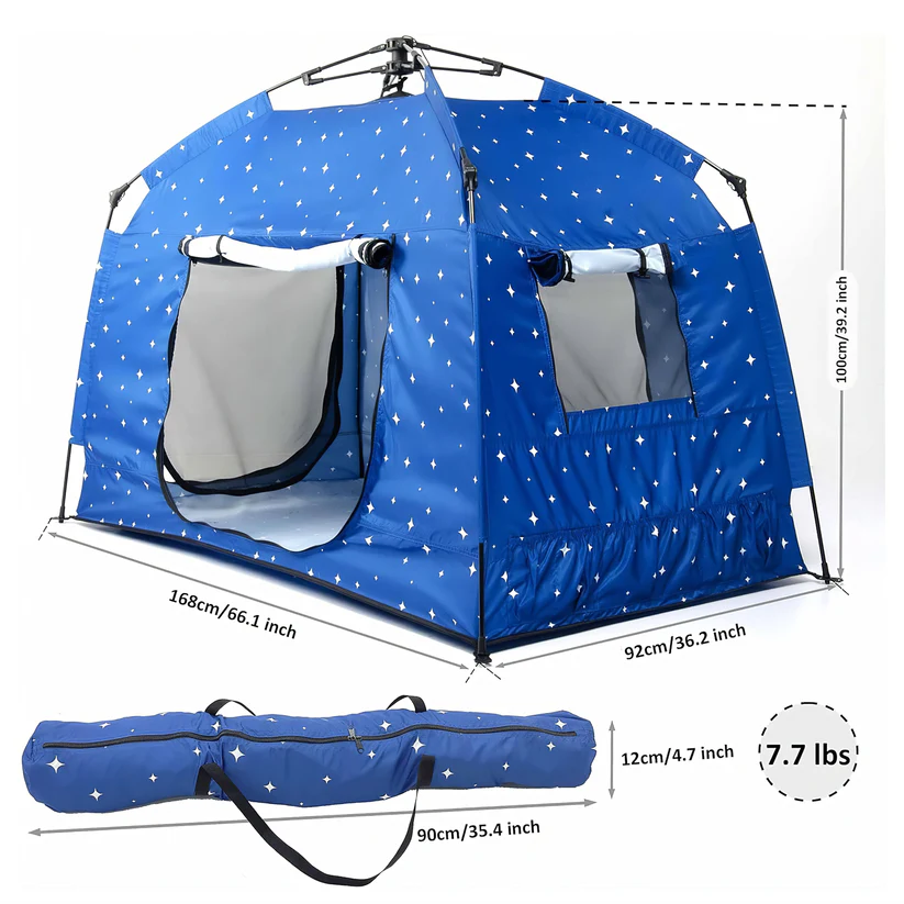 This amazing tent offers a soothing sensory environment for those that need it most. Sets up easily in seconds and is 100% portable! Whether traveling, visiting friends and family, going to the park or in a classroom the tent provides children with their very own space no matter where they go. The addition of the beautiful multi-color LED light strips creates a fun and entertaining environment.