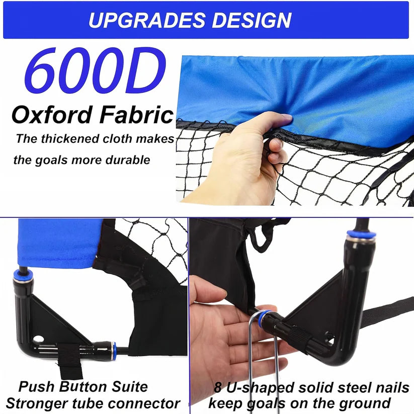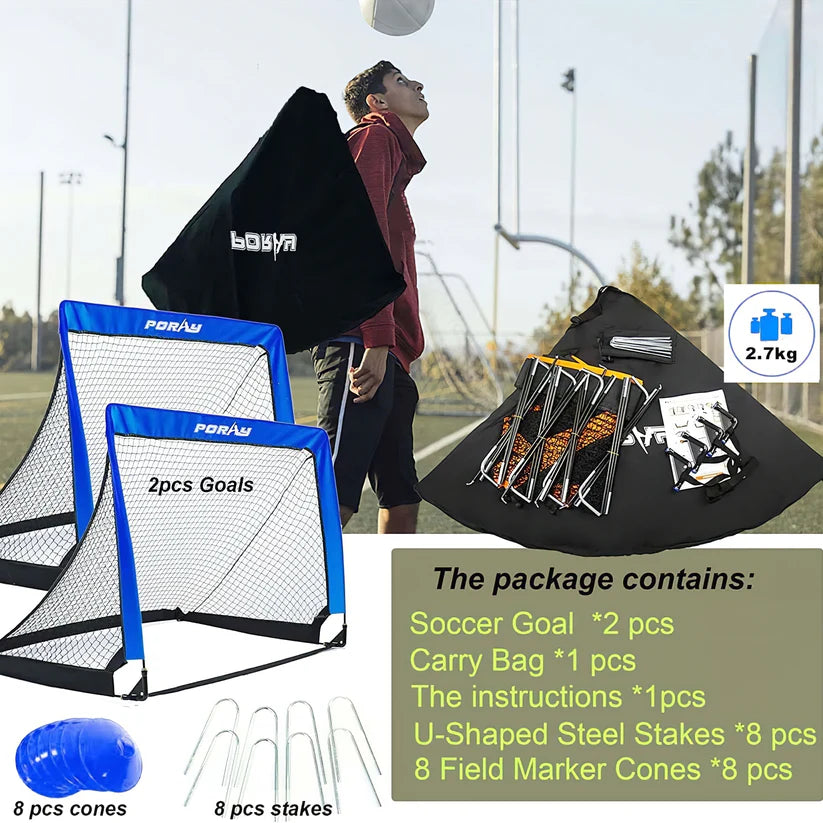 Kit includes; 2 x soccer goals, 8 x stakes, 8 x cones & 1 x portable carry bag